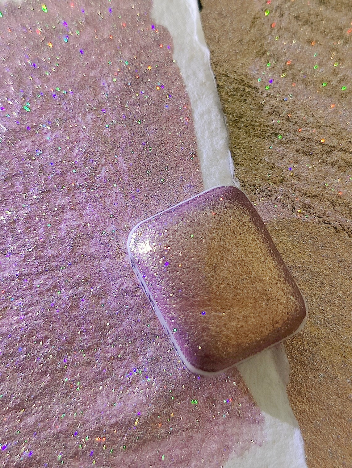 Handcrafted watercolor 1/4 godet rose gold duocolor holographic paint handlettering high quality handmade calligraphy PINK SAND HOLO