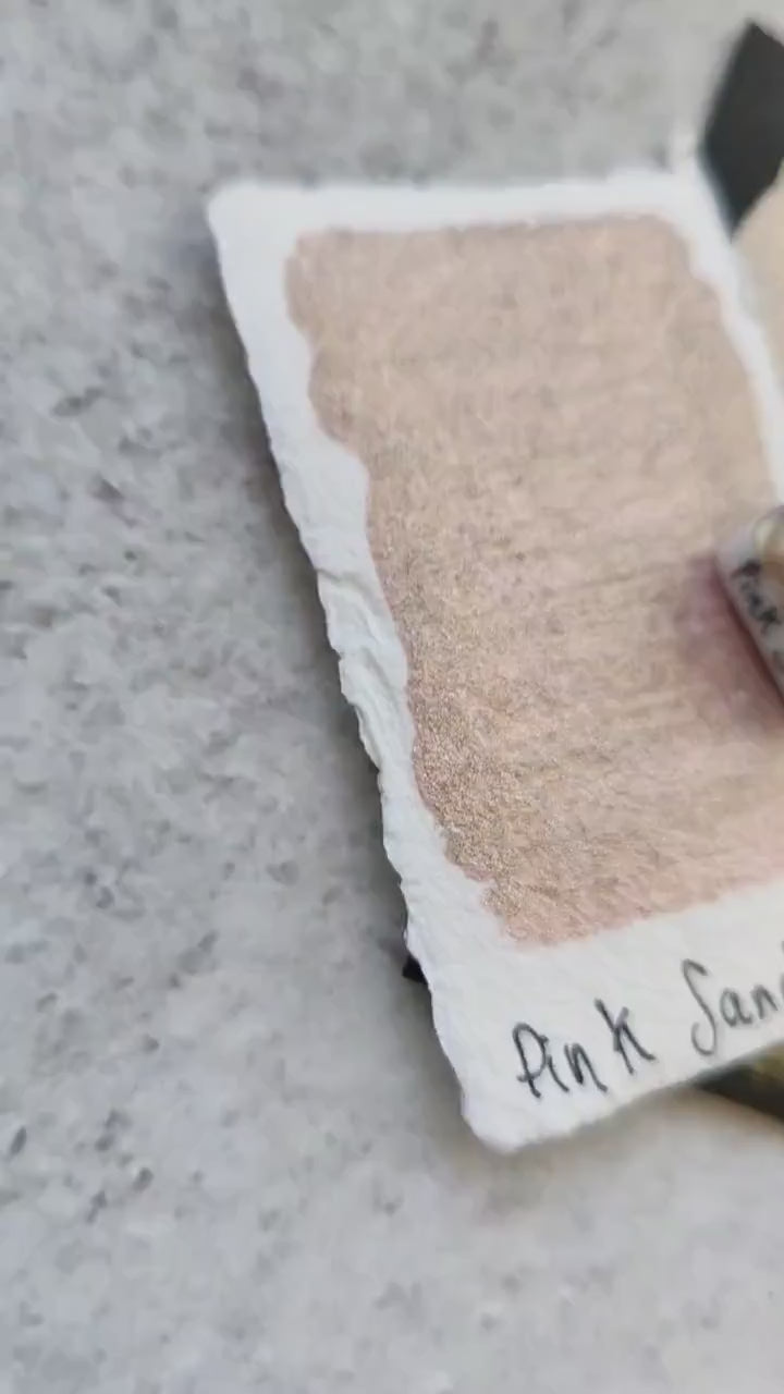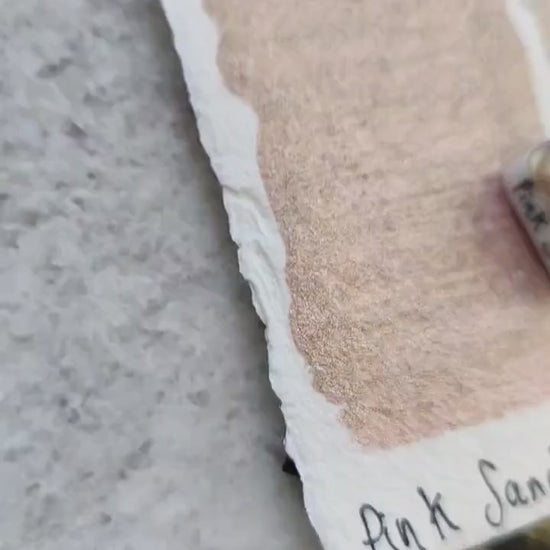 Pink Sand Holo is a watercolor paint perfect for lettering and traditional watercolor. Its colors vary depending on the light and range from pink to pink/golden tones.