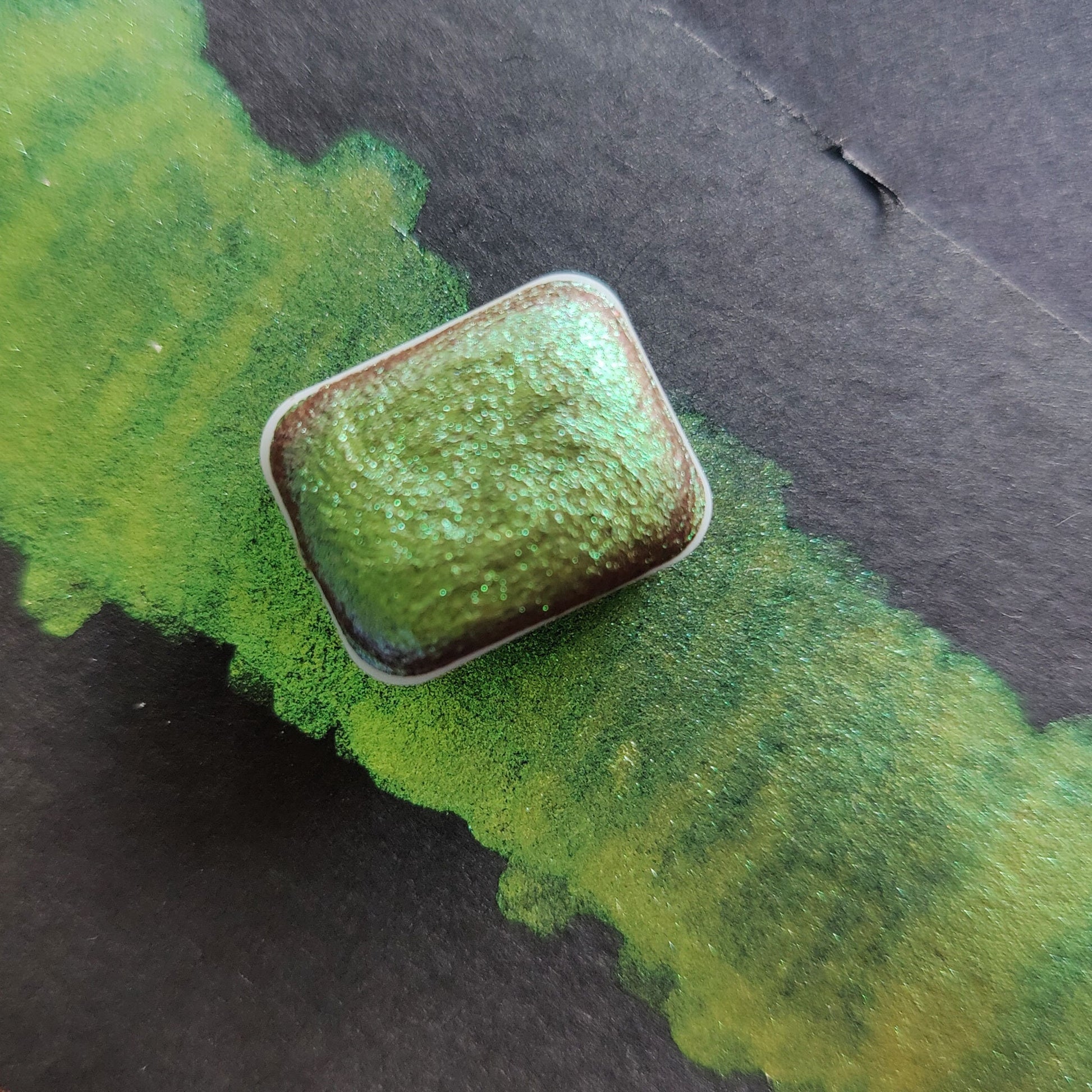 LISANDRO is a watercolor color perfect for lettering and traditional watercolour. Its colors vary depending on the light and range from green to pink with intermediate green tones.
